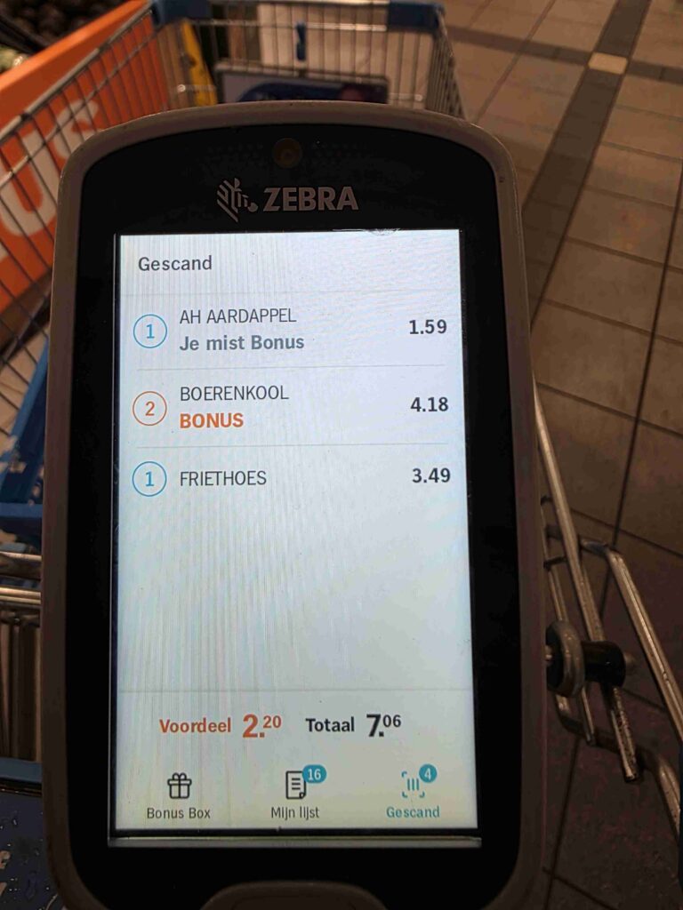 Dat is een makkie, dit onderwerp heeft hiervoor al de nodige aandacht gekregen. Maar wat mankeert er aan 90% van de handscanners? Het touchscreen werkt niet waardoor je een product wel kunt scannen maar niet kunt verwijderen. Vaak kun je nog wel naar de bonusbedragen die je zijn toebedeeld, maar dan kom je nooit je nooit meer terug.