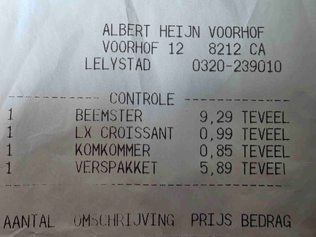 Uiteindelijk was ik ruim € 17,02 goedkoper uit dan wat ik zelf had gescand. Een brok oude Rotterdamse kaas van € 9,29 en nog wat producten heb ik niet betaald (mogen betalen). Deze had ik zelf kennelijk wel gescand maar bij controle is hij er tussendoor geglipt. Laat dit dus vooral zien als bij controle blijkt dat je een foutje hebt gemaakt. Roep dan gewoon zo hard mogelijk OOOHHHHHH, is dat alles, kijk hier eens!